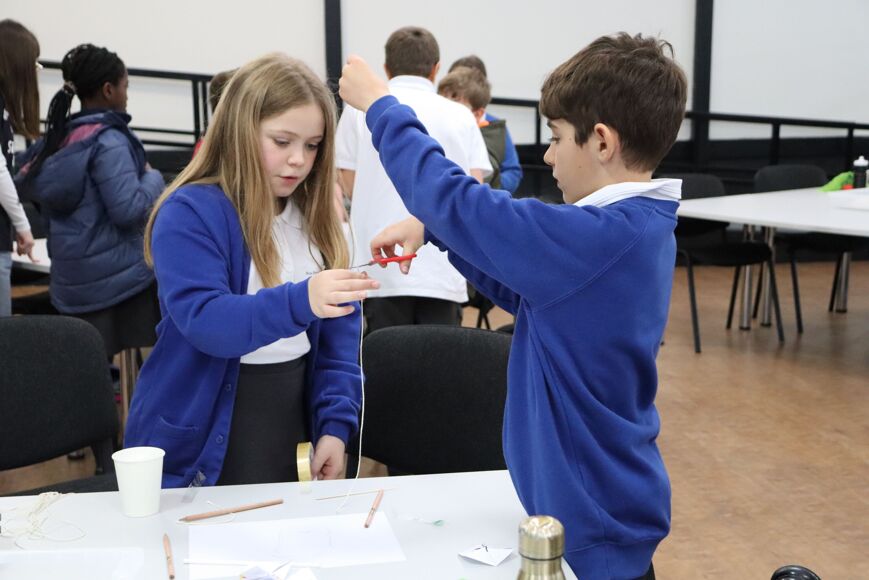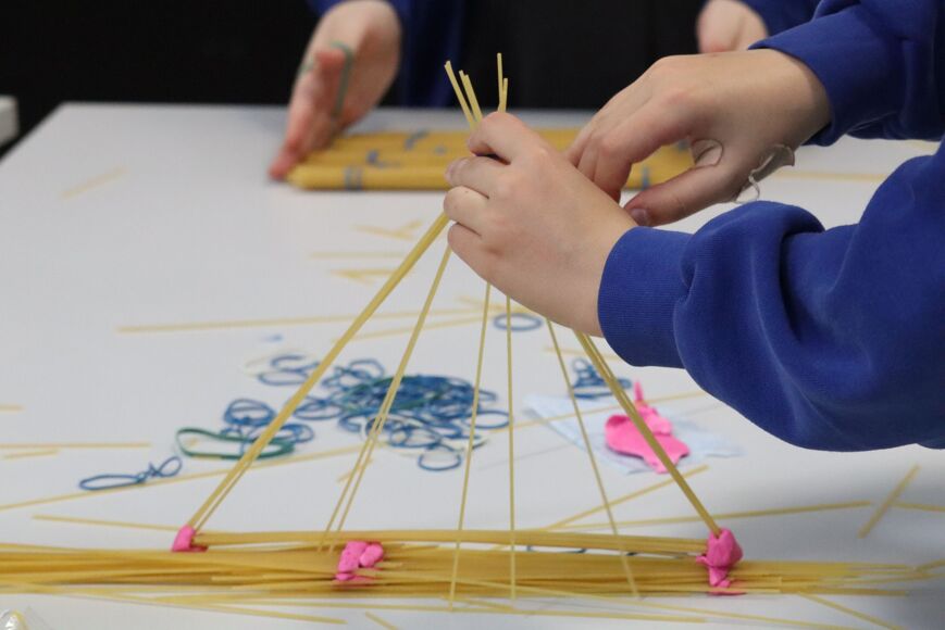 Many advanced topics were covered. The opening session, led by Amy Hooker of the Royal Institute, introduced pupils to parabolas and related this to architecture. Pupils finished up the session by making parabolic string art. Another session included a lesson on topology which involved creating knots with ropes, with the added challenge that the pupils couldn’t let go of the rope! Sir Isaac Newton Sixth Form students explained that this aspect of maths is used by surgeons to help them avoid cutting veins and arteries. The link between maths and engineering was explored when pupils were tasked with building a bridge made out of spaghetti! Pupils worked in teams to come up with designs that could hold the most amount of weight possible before breaking.
